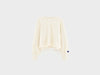 Sweatshirt décontracté à col rond en blanc cassé avec détails mouchetés, doté de bords bruts.