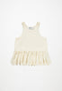 Débardeur blanc cassé en coton biologique doux à encolure ronde. Le débardeur présente une couture à la taille qui accentue la silhouette et se termine par un volant en broderie anglaise.